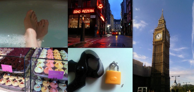 My best-laid plans for a visit to the Aquarium were annihilated by vast queues every time I looked, and those who visited will not be too surprised to hear that a fair bit of the little spare time I had was enjoyably spent relaxing in my extremely luxurious London digs; I did find time to have cheeseburgers and fat chips with the very lovely Lilliana (a longstanding confederate and fellow tea-drinker) along with my fellow moderator on SAAFE, the delightfully posh Emily Jones – both at the same time and for free, dagnamit! Our original plan of laying waste to Soho’s branch of the Hummingbird Bakery was somewhat scuppered by the discovery that whilst it was replete with fabulous baked goods, proper hot chocolate and currently a very fetching Halloween window display it does not fact boast a bog, and since even people who eat £5 pieces of cake need to wee occasionally (particularly after an hour and a half of window shopping, battling the tourist crowds and negotiating the elaborate maze of dig-everything-up-ask-questions-later fencing currently making its presence felt at Tottenham Court Road), we retreated to a nearby bar for gossip-and until home time.