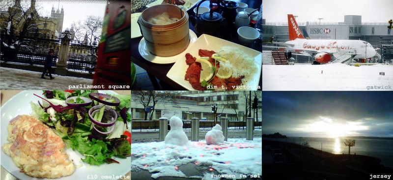 It was a grey and sludgy start en route to Victoria Station, and the Gatwick Express progressed to a hideously expensive but very nice breakfast omelette whilst waiting for something helpful to materialise in place of the interminable ‘Please Wait’ legend next to my flight number on the boards. But eventually, slightly later than planned, there was the blessed relief of getting to my destination to find not only no snow but lovely sunshine and a mild, completely inoffensive sea breeze, or so I found when I went for a stroll to enjoy the fresh air and check out the film times at Cineworld (having previously learned the hard way why browsing Flixter on a UK BlackBerry in the Channel Islands is ill advised).