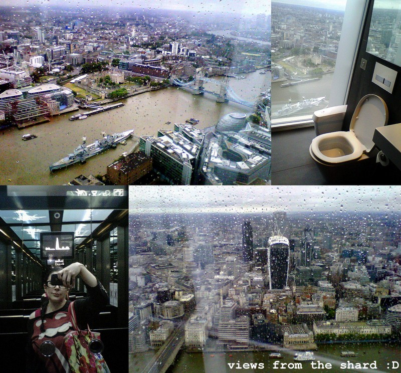 A fabulous time was still had (I don’t believe it possible for the London skyline to look dull no matter what the weather or even the setting, as the view from the toilets demonstrates) and even though the actual yoga had to stay under cover, we were all permitted to run up to the open air platform and have a look, or at least (in my case) hurriedly snap a few pictures and then turn a bit giddy when a gust of wind hit and run back down again – I wonder how many saw the Tour de France pass by from the 73rd floor yesterday afternoon?