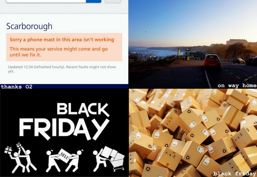 Well on and off, anyway! For the unaware – and I ought really to have posted somewhere about this before now – the local phone mast which has currently been in various states of knackered for over a week is still not fixed, nobody seems to know when it will be fixed, and since I’d assumed it was a temporary blip and would maybe go on for half a day at the most it didn’t occur to me to really dig my heels in on the one occasion I managed to get through to somebody at O2 on the Live Chat. Bollocks, then.